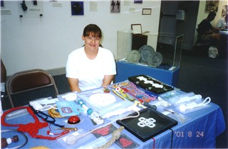 Exhibitor Lindsey’s wife, Kim, insists that the word should be exhibitionist and not exhibitor when describing his flair for attracting an audience. Every year since 1997 he has been a regular part of the IGKT Pacific Americas Branch demonstration crew, taking the Branch collection of knots to various venues in California, Texas, Washington state, Massachusetts, and England. The annual festivals where he regularly exhibits and demonstrates knotting are: